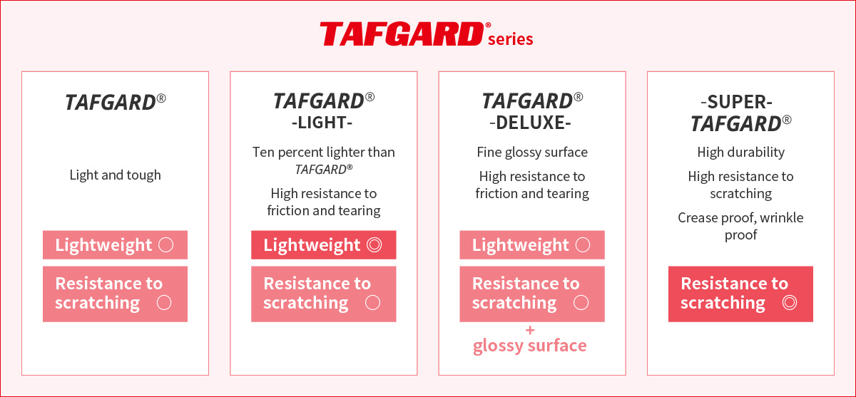 Special resin layer of high toughness gives the material high strength and durability. The material is highly resistant to surface scratches and is widely used for such products as randoseru which are used for six years.