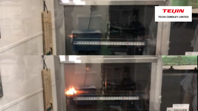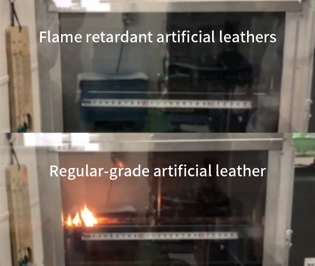Ignite a rectangular test piece at one end. On a flame retardant artificial leathers, the flame will soon go out by itself.