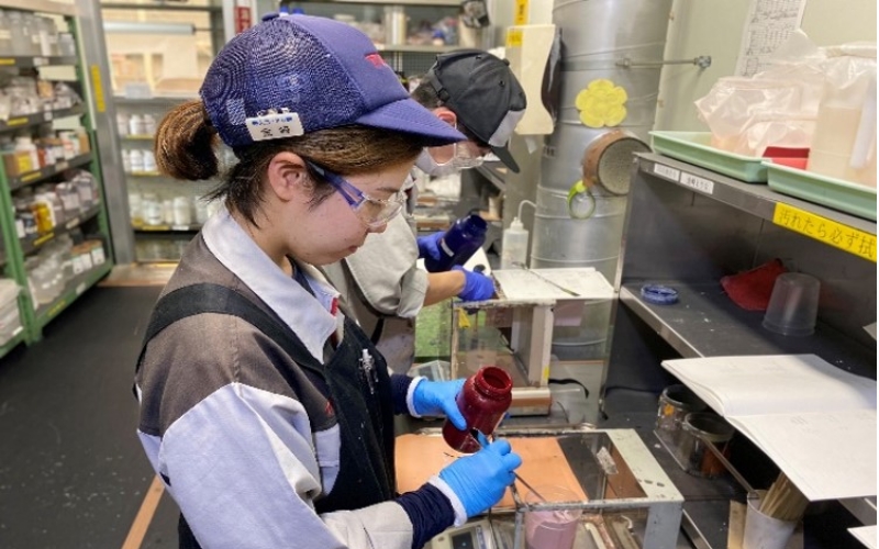 調色は色を見る仕事なので、色の違いを見分けるスキルが身につきました。最初の頃は全く違いが分からなかったのですが、今では微妙な違いにも気付けるようになり、調色のスピードが上がりました。